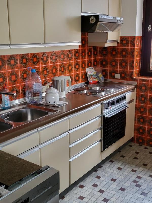 Durch die Haustür und den Windfang gelangen Sie in den Flur des Erdgeschosses. Im Erdgeschoss befindet sich ein kleiner Abstellraum sowie ein erneuertes weißes Badezimmer mit einer Badewanne. Daneben ist eine voll ausgestattete funktionsfähige Küche mit Geschirrspüler, Kühlschrank, Herd und Dunstabzugshaube.
