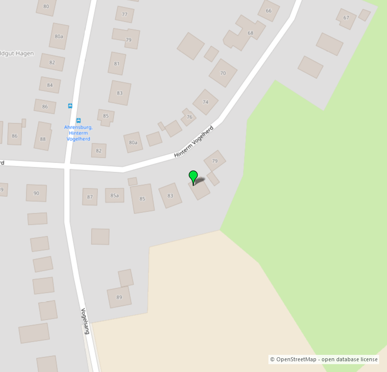 Die Straße Hinterm Vogelherd ist eine Wohnstraße mit 30 km/h-Begrenzung. Alle Schulen sind in der Nähe. Eine Bushaltestelle befindet sich ca. 100 m entfernt. Die U-Bahn Station Ahrensburg-Ost ist ca. 1 km entfernt. Zur BAB 1 Anschlußstelle Großhansdorf fährt man ca. 7-10 Min.