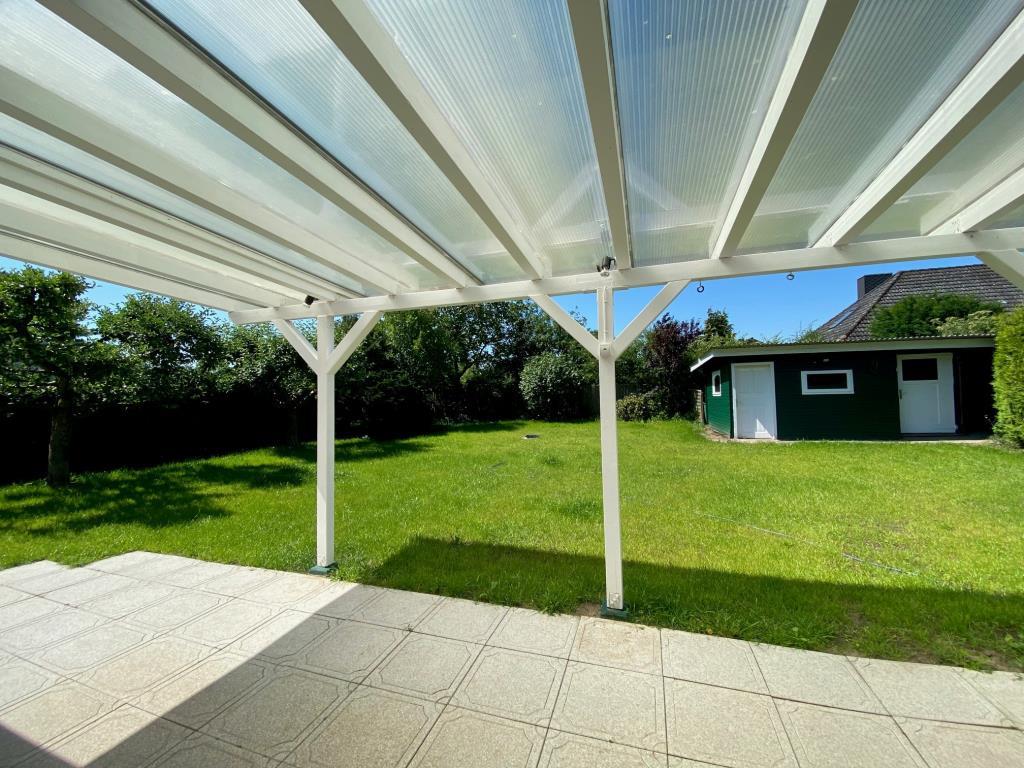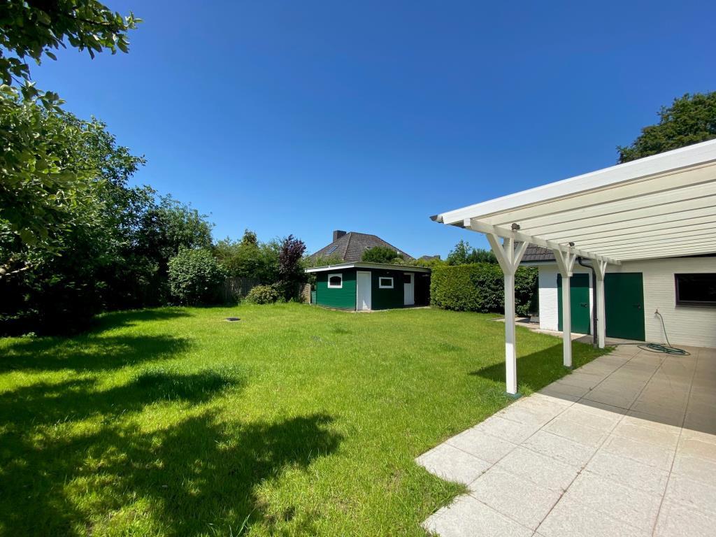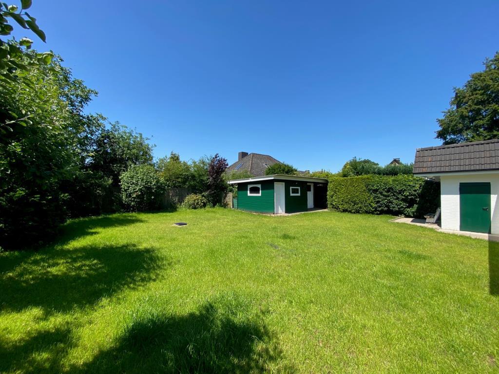Im rückwärtigen Bereich erstreckt sich der Großteil des Gartens. Von hier erreichen Sie die Werkstatt, die sich an die Garage anschließt. Ebenso stehen Ihnen im hinteren Gartenbereich zwei große Geräteschuppen zur Verfügung.