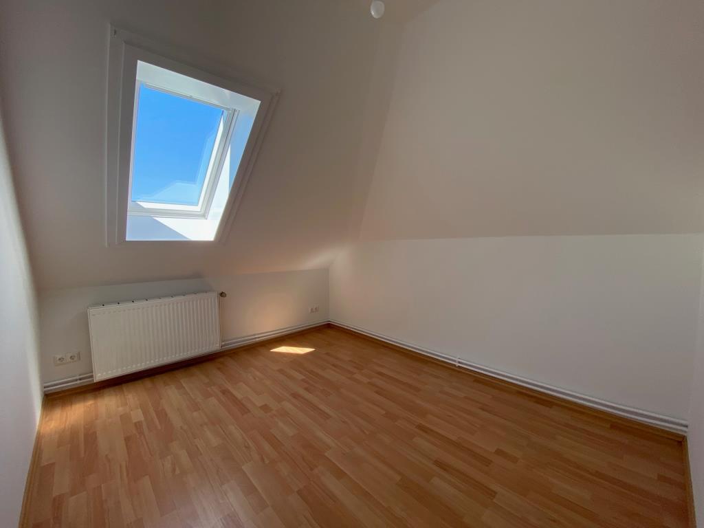 Über die genannte offene Treppe gelangen Sie in das erste Obergeschoss. Hier stehen Ihnen drei Schlafzimmer sowie ein Duschbad zur Verfügung. Auch hier existiert ein Hauswirtschaftraum, der Platz für die Heizungsanlage und die Waschmaschine bietet. Im Obergeschoss sind Fliesen und Laminatboden verlegt.