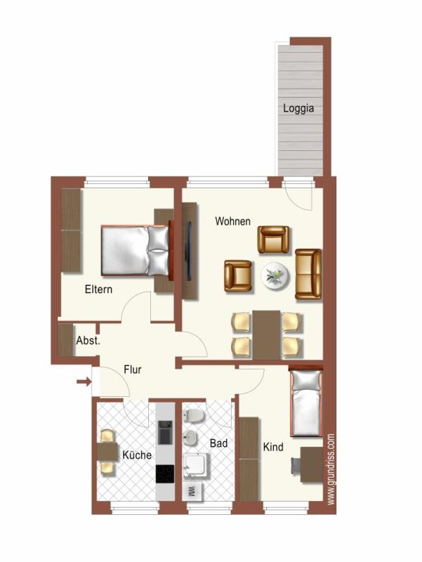 Alle Räume der Wohnung sind direkt vom Flur aus zugänglich. Das rund 23 m² große Wohnzimmer ist dank der großzügigen Fensterflächen besonders lichtdurchflutet und bietet ein angenehmes Raumgefühl.