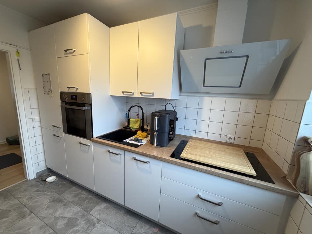 Die Küche ist mit einer modernen Einbauküche (ca. zwei Jahre alt) ausgestattet. Diese umfasst unter anderem einen Kühlschrank mit Gefrierfach, einen Herd mit Backofen und Cerankochfeld sowie eine Geschirrspülmaschine.
